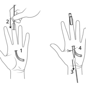 • Một ống nhựa để lót vỏ bọc của gân bị đứt có vòng chỉ gắn ở đầu ống nhựa, cho phép đầu dò, giá đỡ kim và gân luồn qua vỏ bọc gân từ gần đến xa mà không bị kẹt.