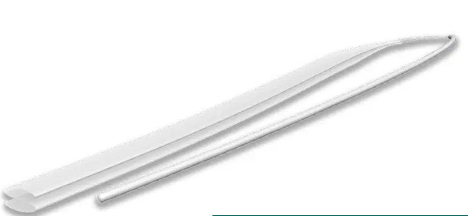 • Đầu dò và giá đỡ kim tích hợp bao gồm một dụng cụ co giãn và kéo dài với một đầu tròn nhẵn, nửa cứng ; đầu kia có tiết diện co giãn để luồn kim cong và chỉ khâu qua ống nhựa.