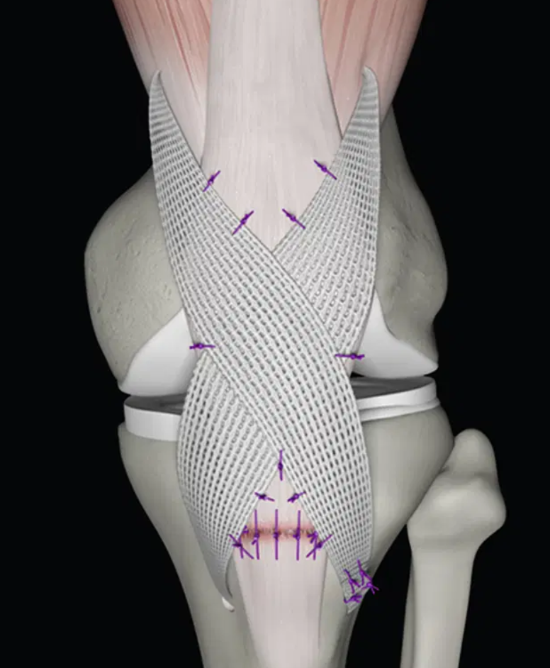 Dùng trong phẫu thuật tái tạo gân cơ tứ đầu đùi, gân bánh chè, MPFL, … Cung cấp độ bền nội tại tuyệt vời và giúp việc phục hồi chức năng vận động diễn ra sớm hơn. Cấu trúc: Băng dệt hở với các đoạn dệt dày, thuôn thành sợi ở mỗi đầu. Cấu trúc này cho phép mô tự nhiên phát triển tích hợp vào trong thiết bị.